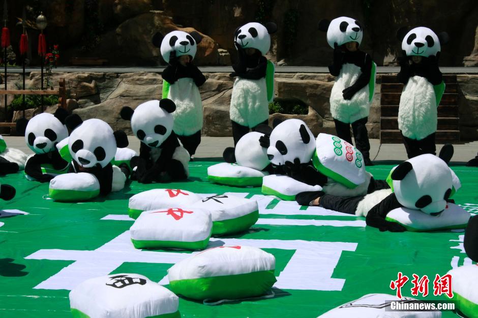 Hundreds of 'giant pandas' play mahjong in Jiuzhaigou, SW China (2)