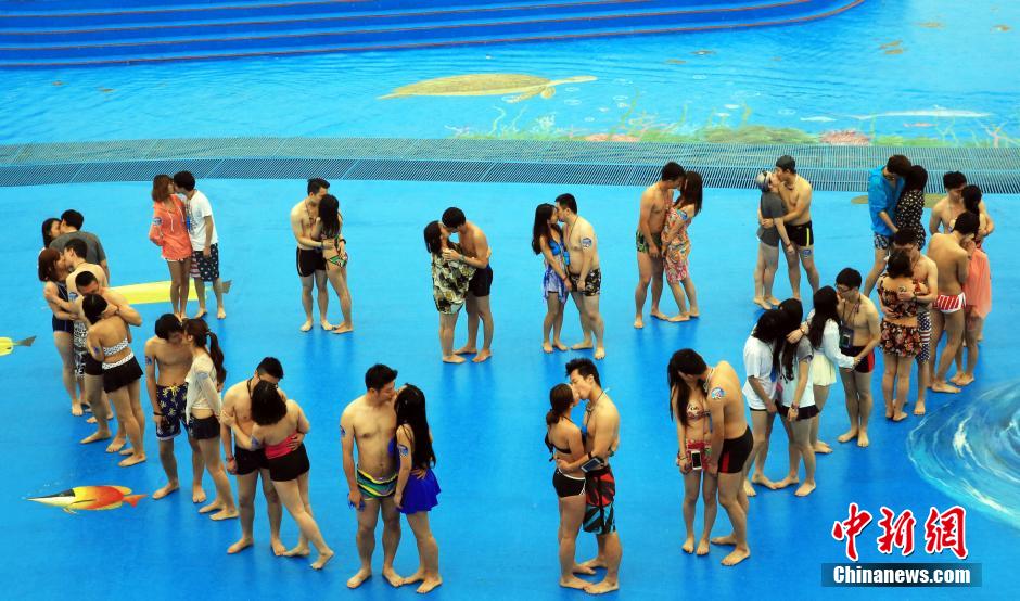 Lovers do warm-up exercises before the contest. (Chinanews.com/Pan Suofei)