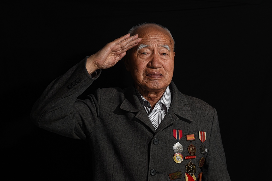 Fu Jinshan, 82, became a messenger when he was only thirteen. Later he joined in Chinese army and fought in the War of Resistance against Japan.On occasion of the 70th anniversary of the victory of the War of Chinese People's Resistance against Japanese Aggression, a Xinhua reporter takes photos of nine veterans’ salutes in Chengde, north China’s Hebei province. (Photo/Xinhua)
