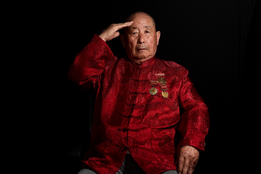 Zhang Shuchen, 88, joined in Eighth Route Army in 1945. On occasion of the 70th anniversary of the victory of the War of Chinese People's Resistance against Japanese Aggression, a Xinhua reporter takes photos of nine veterans’ salutes in Chengde, north China’s Hebei province. (Photo/Xinhua)