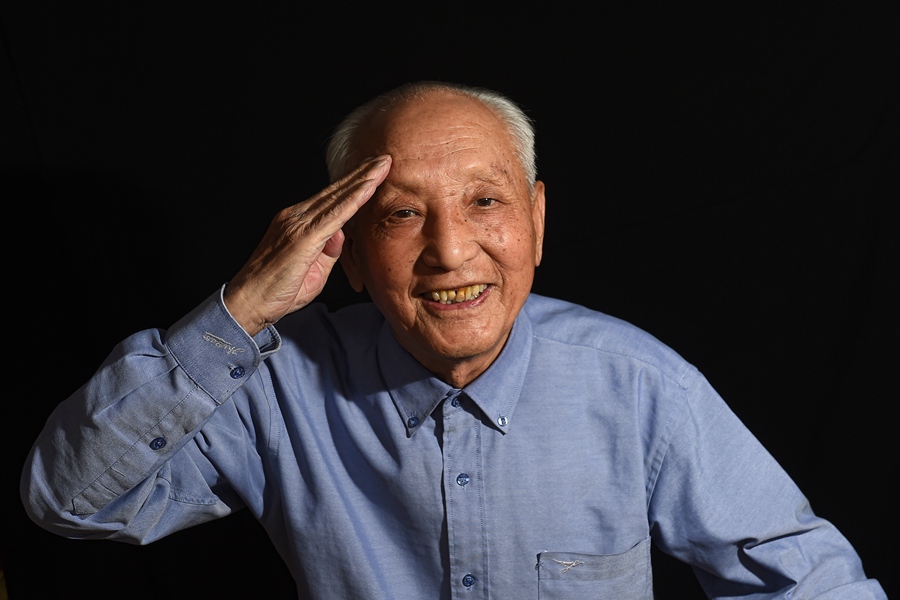 | Ge Li, 96, had persevered in the war of resistance in the enemy's rear area since 1937.On occasion of the 70th anniversary of the victory of the War of Chinese People's Resistance against Japanese Aggression, a Xinhua reporter takes photos of nine veterans’ salutes in Chengde, north China’s Hebei province. (Photo/Xinhua) |