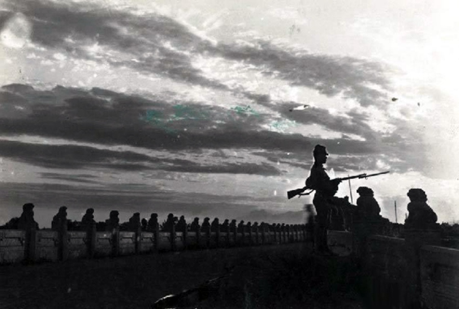 Japanese soldiers at the Lugou Bridge. (File Photo)