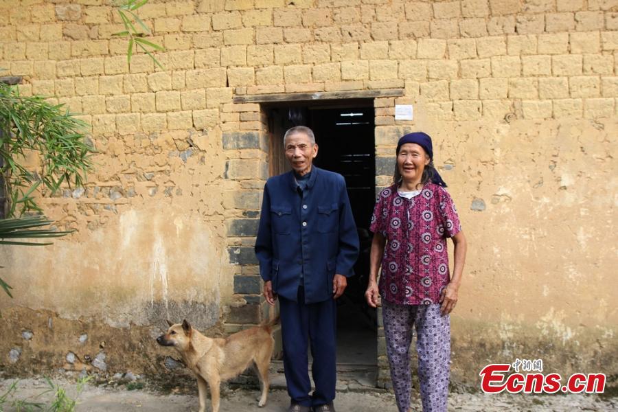 | Chen Youfeng, 90, and his wife Mao Jiaoyun, 83, pose for a photo in Shuangpai county, Central China’s Hunan province. Chen fought Japanese troops in 1944. Chen and his wife married in 1958 and they have one son and two daughters. (Photo: China News Service/He Hongfu) |