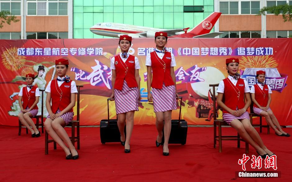 6 students majoring flight attendance holds a talent competition on campus to find their true love in southwest China's Chengdu on July 6, 2014. The six girls competed talents such as art martial, tea ceremony with the challengers. "We hold the competition to meet more friends, and to find a soul mate," said one of them. (Photo/Liu Zhongjun)