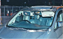 A car in Hong Kong was hit by a bag of rice weighing about four kilograms from the sky early in the morning of June 5, 2015 (Photo/Sing Tao Daily)