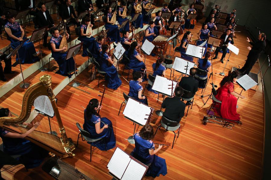 Chinese artists perform during a concert of "2015 Experience China - Jilin's Culture Week" in Berlin, Germany, on July 7, 2015. (Xinhua/Zhang Fan)