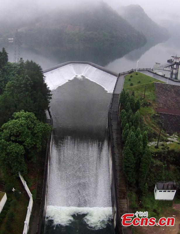 A water reservoir discharges water as a precautionary safety measure before typhoon Chan-Hom approaches Wuyi county, East China’s Zhejiang province, July 9, 2015. Typhoon Chan-Hom, which is moving quickly, could land in Fujian and neighboring Zhejiang province late Friday as a strong or super typhoon, bringing heavy rainfall, according to the National Meteorological Center. (Photo: China News Service/Zhang Jiancheng)