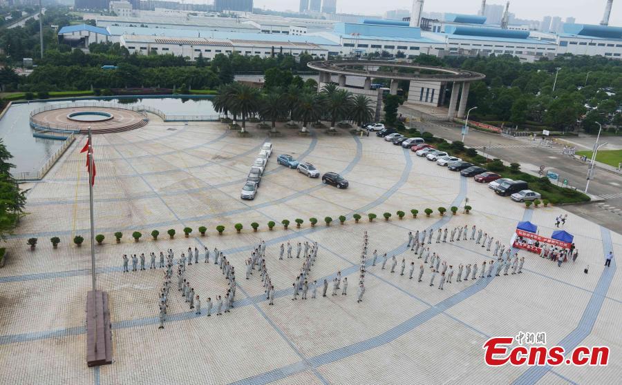 Employees of a company stand to form the Chinese character “7 billion population” in Changsha county, Central China’s Hunan province, July 8, 2015. The activity was held to mark World Population Day on July 11. (Photo: China News Service/Yang Huafeng)