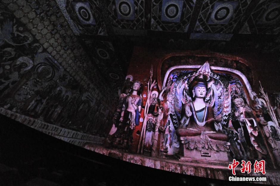 The Mogao Grottoes began to play “Incredible Buddhist Grottos” - a digital film with 180 degrees viewing angle - to tourist recently. The film is the world first UHD 8K digital full dome film themed grotto art. Tourists were all stunned by the fine images. (CNS/Yang Yanmin)