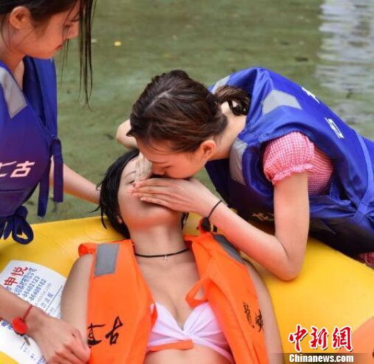 Lifeguards are in first-aid training. (People.cn/Liu Qing)