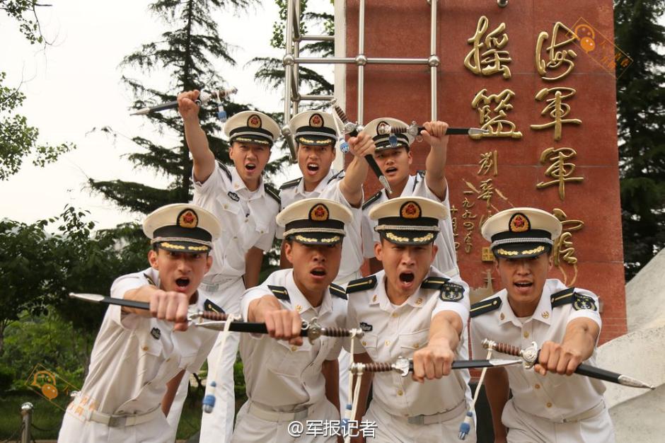 Dalian Naval Academy presents souvenir sabers to its graduates on June 9, 2015. The name and student number of each graduate are engraved on the blade. Representing honor and responsibility, the saber will be presented to graduates every year from now on. (Photo/Weibo of PLA Daily reporters)