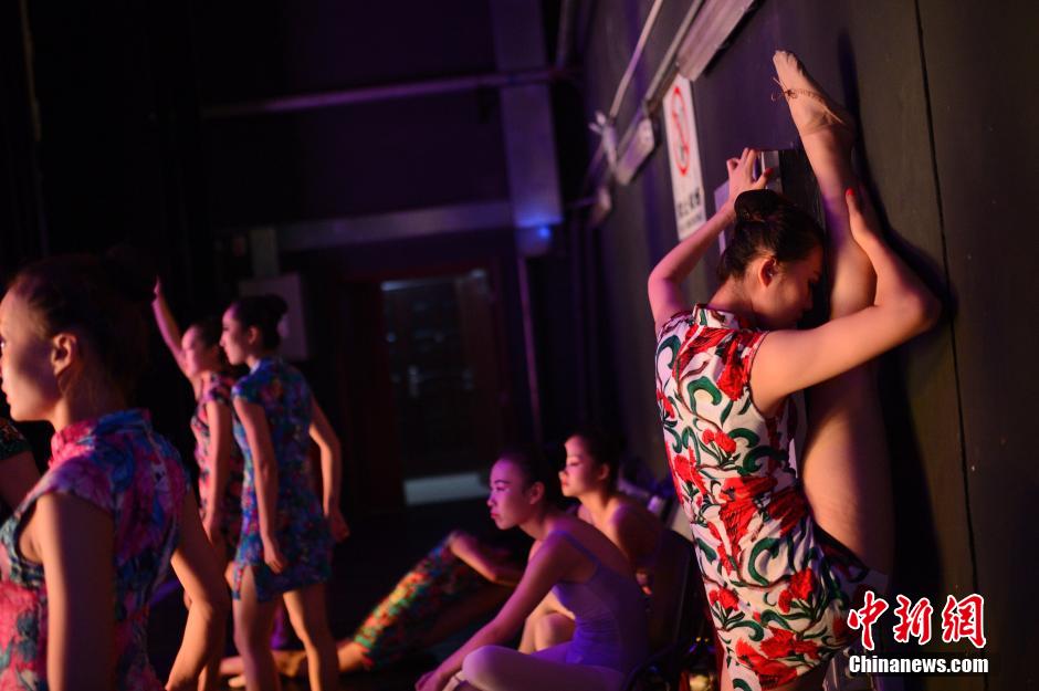 Students stretched their legs at the backstage on July 7, 2015. (CNS/ Liu Wenhua)