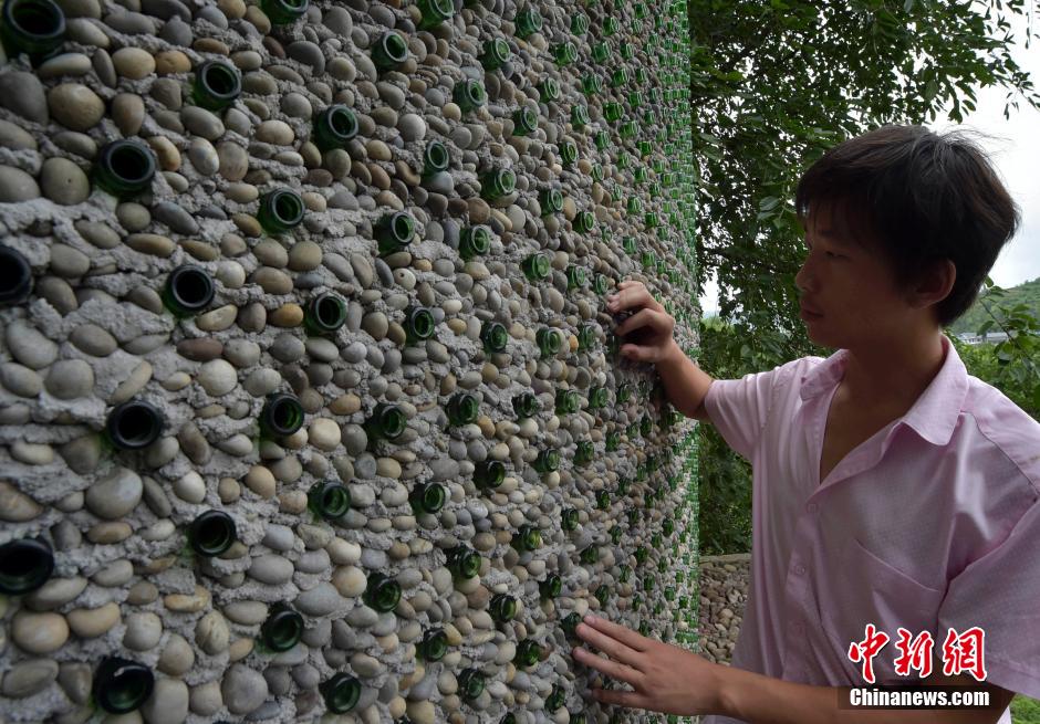 When everyone is busy with their job finding or preparation for graduate school, senior student Li Rongjun is working on his own business - a cabin made of 8,500 beer bottles. The cabin has two floors, and the upper floor is composed of green beer bottles. His neighbors came to visit the beer bottle cabin, and were all amazed by the spectacular feeling of staying inside this cabin. But Li still has a long way to go before his little "business" starts running. Besides innovation, cooperation with companies with professional promotional skills to make the cabin more appealing to the market is key to his success.(Chinanews/Zeng Wei)
