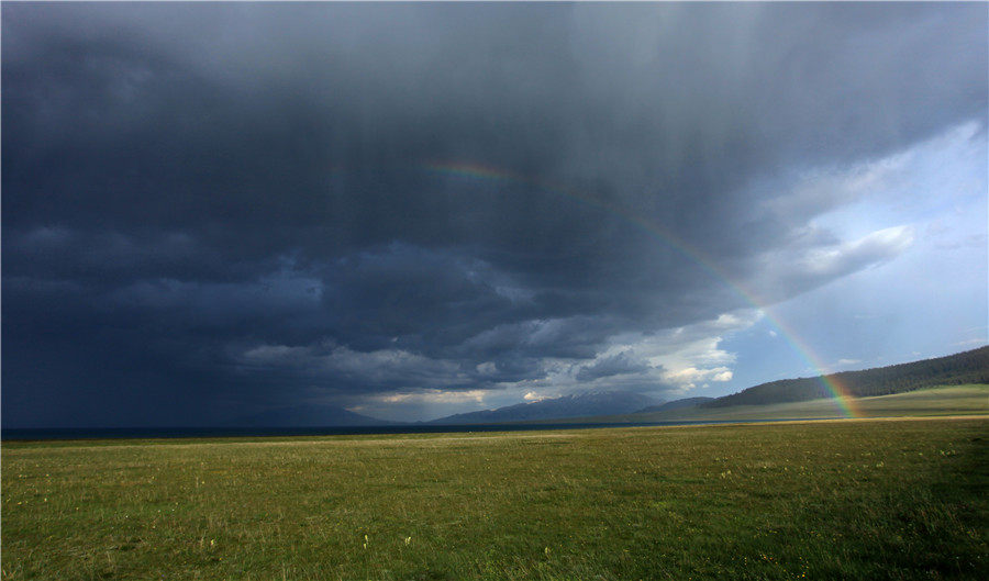 A summer view of Sayram Lake in Northwest China's Xinjiang Uygur autonomous region. [Photo by Du Wei/For chinadaily.com.cn]