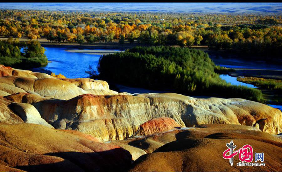 Located in Burqin County of Northwest China's Xinjiang Uygur Autonomous Region, Wucaitan, or Rainbow Beach, is a sightseeing spot known for its unique landforms created by years of wind and water erosion. Featuring blue sky, colorful beach and clear water, Wucaitan is one of the most famous attractions in Xinjiang. (Photo/China.org.cn)