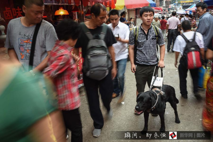 Mixiu leads Wu Lei in the crowd, July 10, 2015. (Xinhua/Ou Dongqu)