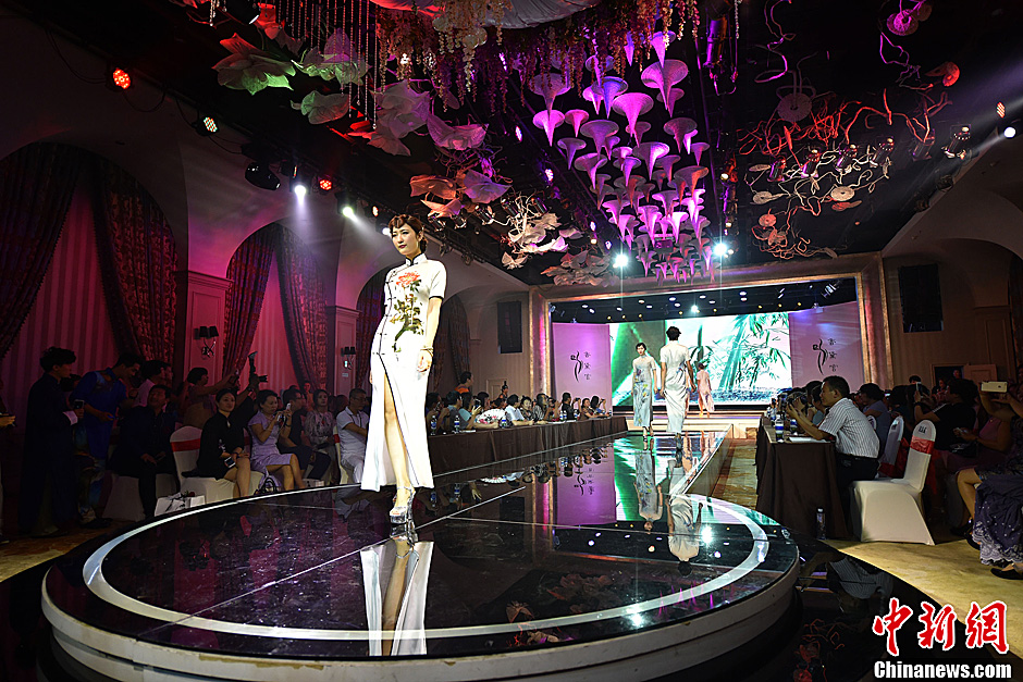 China's first collection of poems Women Wearing Cheongsam was released in Beijing recently. Models in various cheongsams shine at the launching ceremony. (CNS Photo)