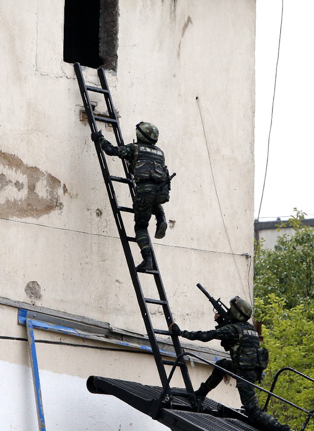A detachment of Shanghai Armed Police Corps conducts an anti-terrorism exercise in Shanghai's Pudong District earlier in this month. The drill aims to improve the special armed police’s ability to handle emergency under full-time, all-weather, all-terrain circumstance. (Photo/ Xinhua)
