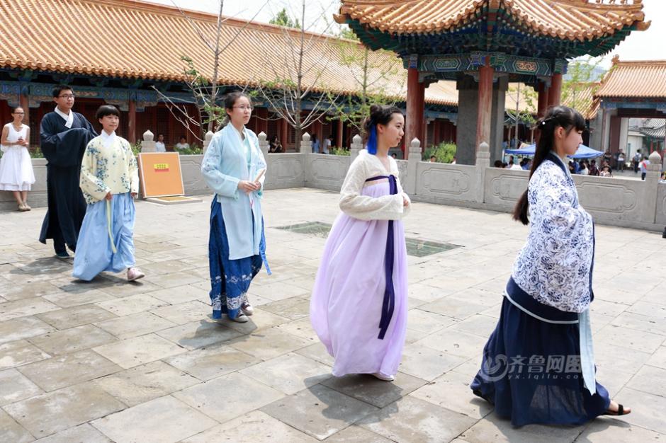 High school students in Hanfu clothing perform in a talent show in Confucian Temple on July 12, 2015 in Jinan, Shandong province.