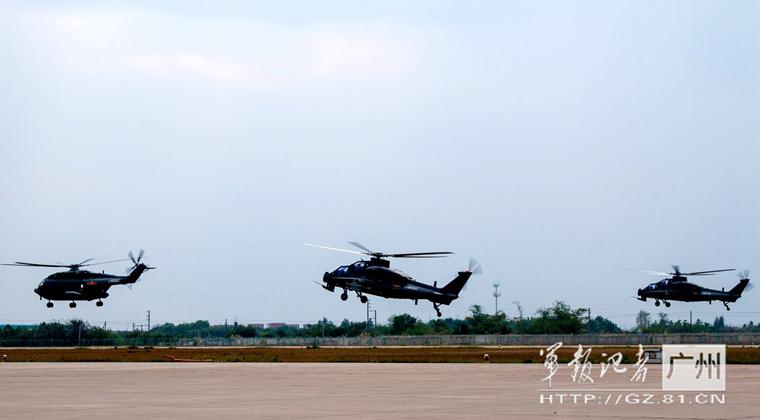 An army aviation brigade of Guangzhou Military Region conducts a day and night flight training for the Z-10 attack helicopter formation in late June. (Photo/gz.81.cn)