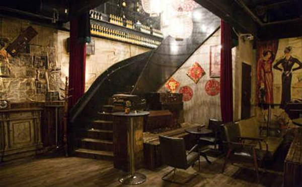 The decoration looks like a chincy film set, with its mishmash of vintage knick knacks and blasting up-tempo jazz.