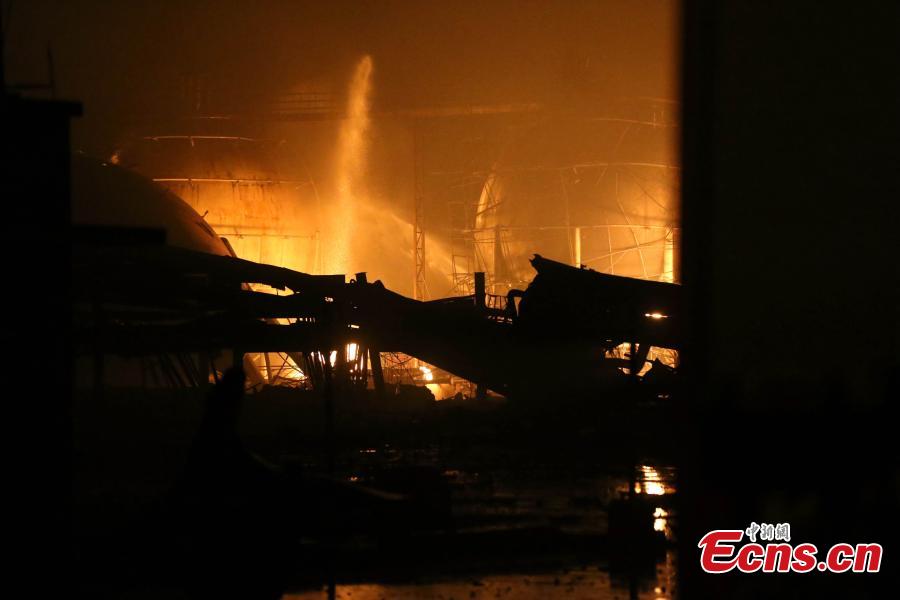 Firefighters ready to extinguish east China petrochemical plant fire (3)