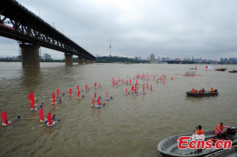 | July 16th, Wuhan, the 42nd International Yangzi-river crossing festival were held. There are about 3500 people from 38 teams joined this event. (CNS photo/Zhang Chang) |