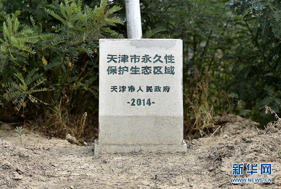 A stone stele displays the Chinese characters “Tianjin’s Permanent Ecological Protection Area” on a bank of the Duliujian River in Tianjin municipality, July 11, 2015. The river, which runs for 67 kilometers, is a major flood diversion project that runs through several regions in Tianjin, and it provides water for the Beidagang Wetland, a significant habitant for migratory birds in East Asia. Companies based along the river's banks have been polluting its waters for ten years. Residents living near the river complain about the bad smell, diminished harvests, and suspicious deaths of poultry. (Photo/Xinhua)