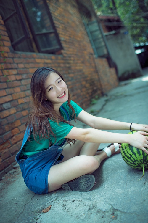 Photos of a college student posed with watermelons go popular online.(Photo source: scol.cn)