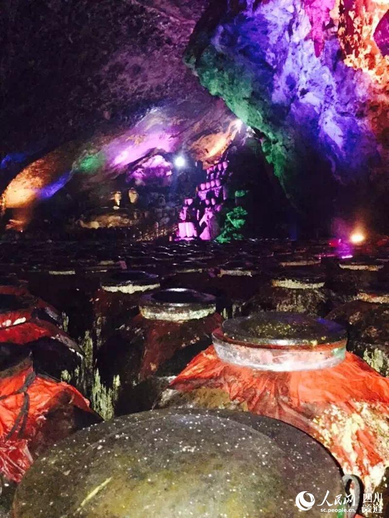 Located in Xingwen County, Yibin of southwest China’s Sichuan province, Shihai Cave stores about 1,200 tons of liquor. Inside a karst cave which has constant temperature and humidity, the flavor of the liquor will be better preserved. (Photo/people.cn)