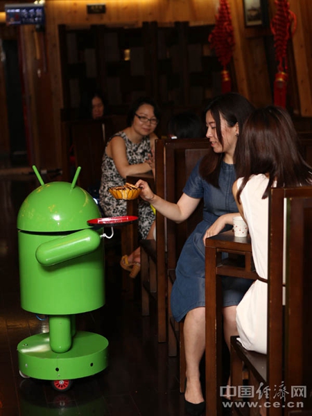 | Robot waiter brought food for visitors.(Photo/ ce.cn) |