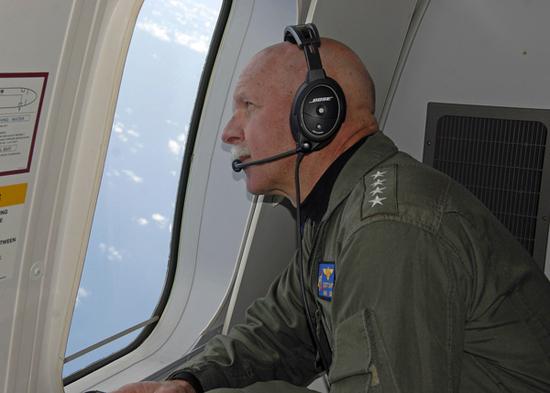 | U.S. Pacific Fleet Chief Scott Swift in a surveillance flight over the South China Sea. |