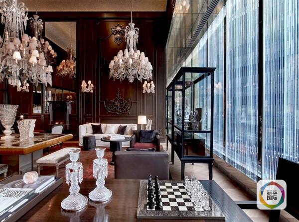 The Baccarat Hotel, with a 125-foot-wide (38-meter-wide) corrugated crystal facade, is across the street from the Museum of Modern Art. Rooms at the hotel feature four-poster beds flanked by marble nightstands, Baccarat crystal light fixtures, white-marble bathroom floors and flat-screen televisions concealed within smoked mirrors, according to the property's website. The property also has a Spa de la Mer, fitness center and indoor pool.