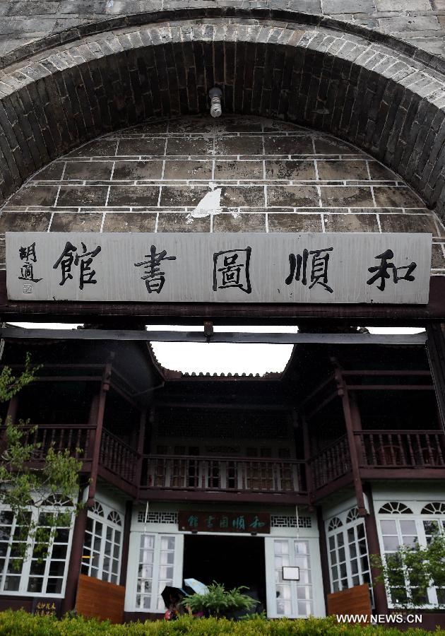 Photo taken on July 20, 2015 shows a building of Heshun Library in Heshun Town of Tengchong County, southwest China's Yunnan Province. Founded in 1928 with donations by overseas Chinese returning to their hometown Heshun, Heshun Library is China's oldest village library famous for its impressive collection of books and architectural complex with Chinese and Western elements combined. (Xinhua/Lin Yiguang)