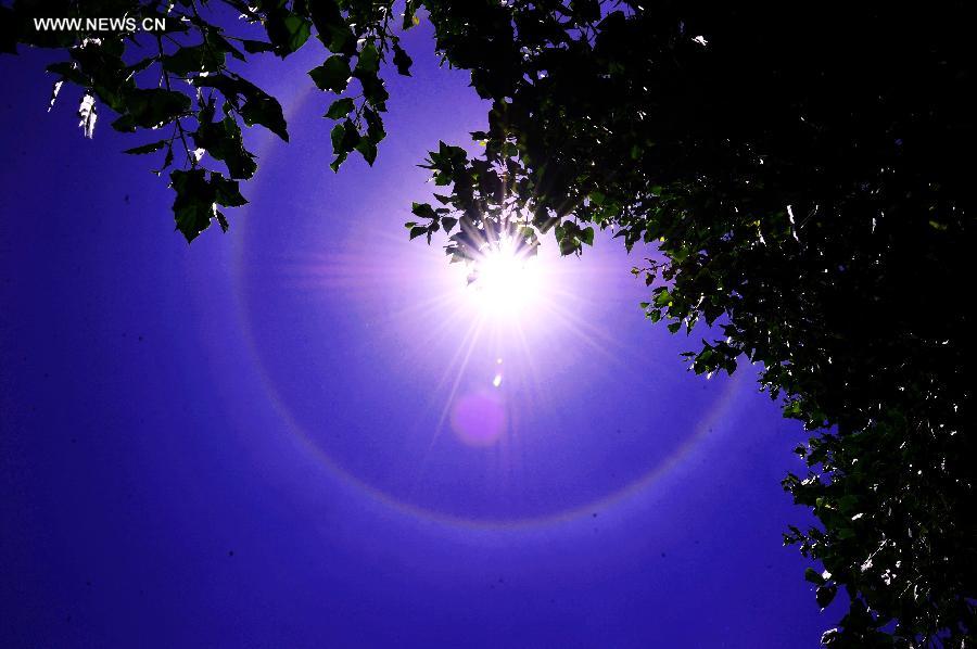 Photo taken on July 21, 2015 shows a view of solar halo over Lhasa, capital of southwest China's Tibet Autonomous Region. (Xinhua/Zhang Rufeng)