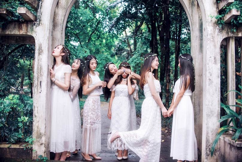 Several girls take a group of stylish graduation photos at Sun Yat-sen University in Guangzhou, capital of south China's Guangdong Province. They pose as the cast members in Tiny Times, a popular Chinese romance drama film written and directed by Guo Jingming and based on the best-selling novel of the same name also by Guo. (Photo/Xinhua)