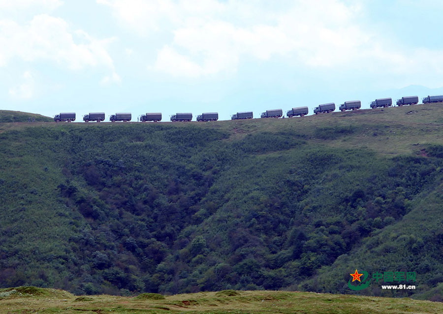 An army driver training battalion of the 13th Group Army begins the long-distance heavy-load transport training on July 16, 2015. The training will last six days with total travel distance of 1,590 km. (Photo/www.81.cn)