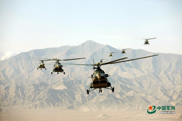 Xinjiang military helicopters. (Photo/81.cn)