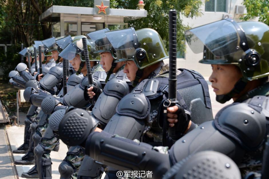 A detachment in PLA Shenyang Military Area Command takes training with new anti-terrorism equipment in middle July. The new equipment makes soldiers look like "Ironman warriors". (Photo/jz.81.cn)