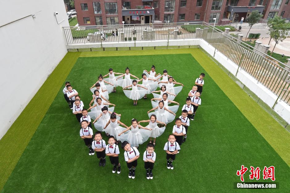 Girls and boys pose for kindergarten graduation photos in Taiyuan, north China’s Shanxi province on July 21, 2015. (CNS/Wu Junjie)