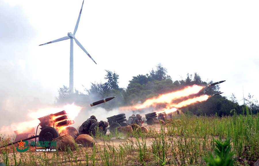 A PLA artillery regiment conducts a live fire drill on July 18, 2015, shooting at marine targets. (Photo/www.81.cn)