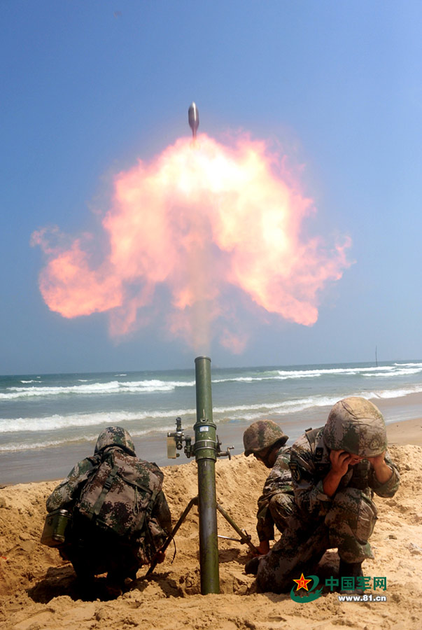 A PLA artillery regiment conducts a live fire drill on July 18, 2015, shooting at marine targets. (Photo/www.81.cn)