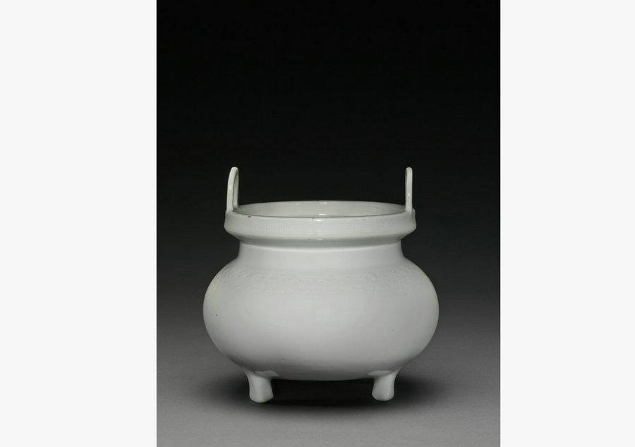 The White Glaze Tripod Censer with Two Ears impressed the visitors with its delicate texture and exquisite yet elegant design, signaling the progress of porcelain production in Kangxi period. (Source: China.org.cn/Capital Museum)