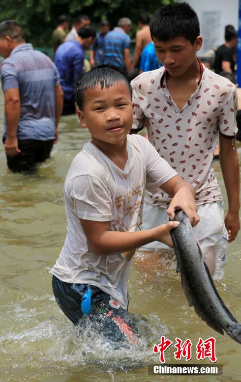 Miao people catch fish in a river to celebrate the traditional Fish-catching Festival on July 21 in Rong'an county of south China's Guangxi. (Photo/CNS)
