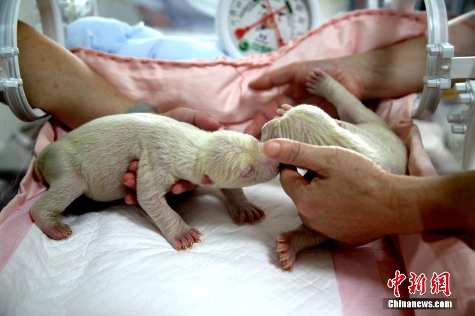 | Shasha, a polar bear gave birth to two polar bear cubs – one male and one female - in Quancheng Ocean Polar World, Shandong Province on July 19, 2015. This is the first “pigeon pair” of polar bear successfully bred under the environment of artificial feeding in Shandong. (Photo by China News Agency/ Zhang Jun ) |
