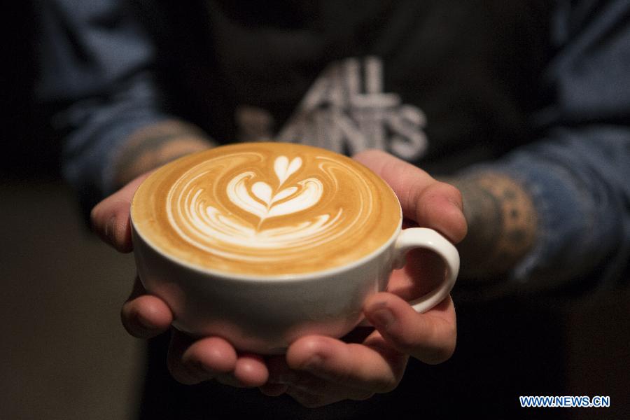 | Image taken on July 22, 2015, shows Raphael Souza, master barista of the "All Saints Cafe" showing a latte art design made by him, in Buenos Aires city, capital of Argentina. Buenos Aires city has a nourished tradition in preparing coffee, considered as a cultural and socializing element. (Xinhua/Martin Zabala) |