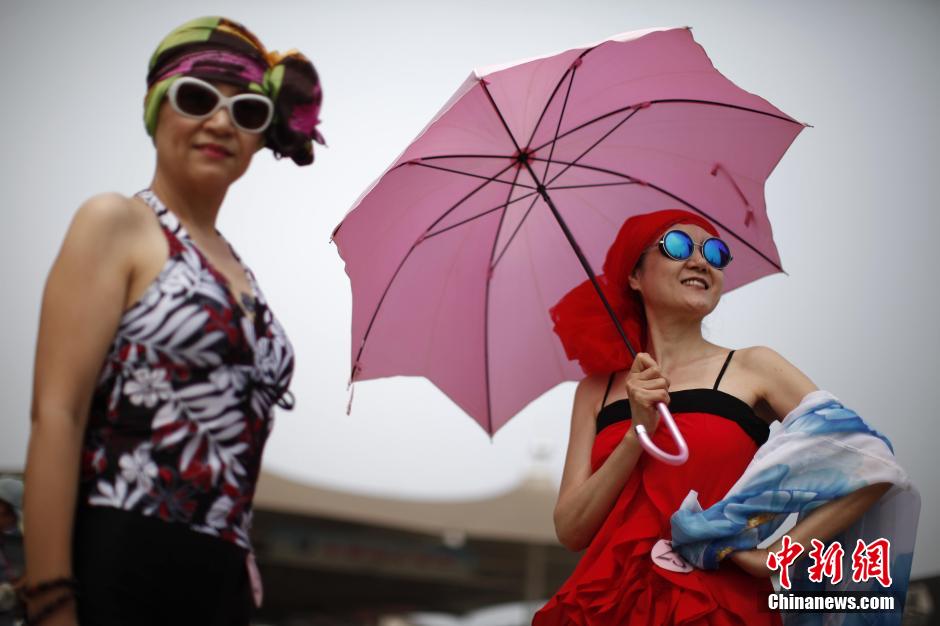 More than 100 people around 70 participate in a swimming-suits fashion show in Tianjin on July 23. Their healthy figure and confident attitude make them look like stunning super models on stage. (CNS/Tong Yu)