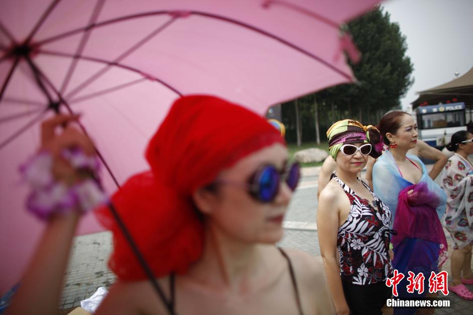 More than 100 people around 70 participate in a swimming-suits fashion show in Tianjin on July 23. Their healthy figure and confident attitude make them look like stunning super models on stage. (CNS/Tong Yu)