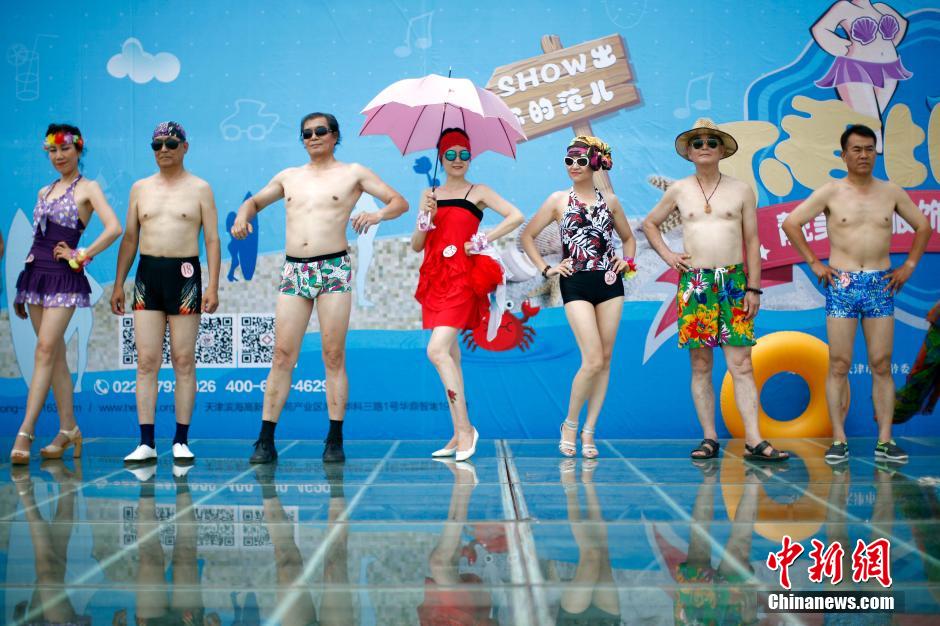 More than 100 people around 70 participate in a swimming-suits fashion show in Tianjin on July 23. Their healthy figure and confident attitude make them look like stunning super models on stage. (CNS/Tong Yu)