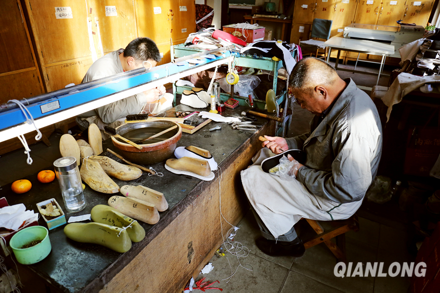 | Xu is a craftsman in Neiliansheng, the oldest handmade shoes stall in Beijing. He has worked there for several decades. (Photo/Qian Long) |